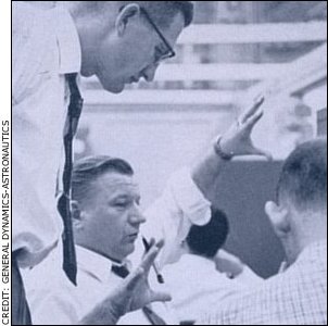 “Going back to the old ideas of Oberth, I said I have a relatively dense first stage. And it so happens that the second stage, because it is less dense, fits just beautifully on the first stage. Now all we have to do is remove the neck from Atlas and make it cylindrical all the way and we have a 10-foot-diameter base. For a second stage, that’s just beautiful.”