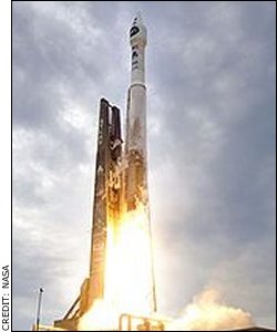 On June 18, 2009, the 187th Centaur took what NASA called “A First Step in the Return to the Moon.” It would star in LCROSS, the NASA-Ames-Northrup Grumman experiment to detect lunar water. LCROSS stands for Lunar Crater Observation and Sensing Satellite. As David DeFelice of NASA’s Glenn Research Center put it, Centaur is “always the bridesmaid, never the bride” because it must quietly retire in Earth orbit after kicking its amazing payloads off on their headline-making missions. But this time, “Centaur will be the center of attention for a few glorious minutes in October,” wrote DeFelice in NASA’s mission pages. |